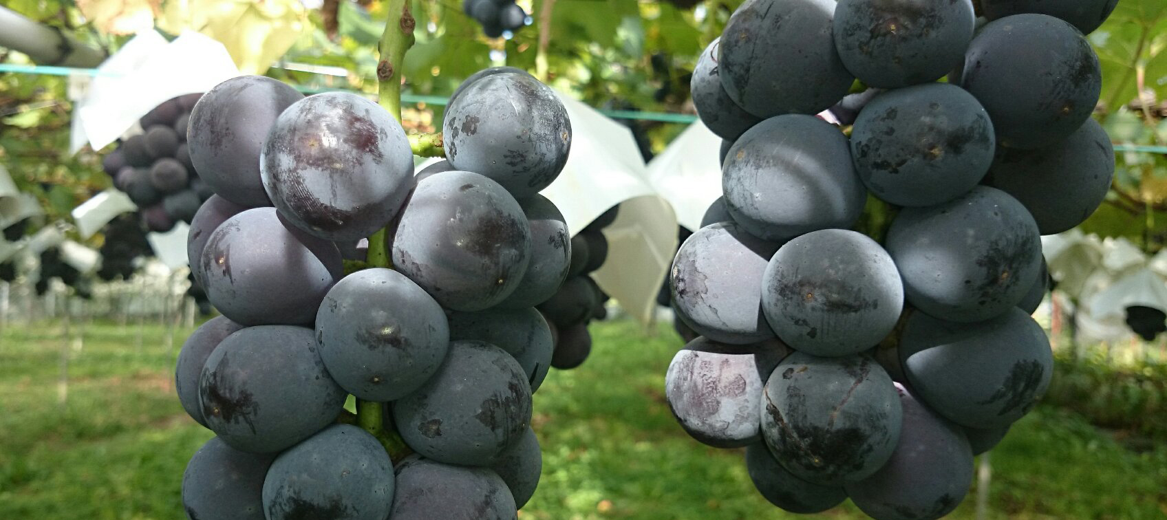 ブドウ ナガノパープル 【特性】 ・種無し ・皮ごと食べられます。 甘み ★★★★★ 酸味 ★★☆☆☆ 香り ★★★☆☆ 保存 ★★☆☆☆ 冷蔵庫で3日程度 長野県のオリジナル品種です。甘味が強く酸味は控えめです。香りも良く、後味に若干の渋さが残る為、とても濃厚な味わいをお楽しみ頂けます。